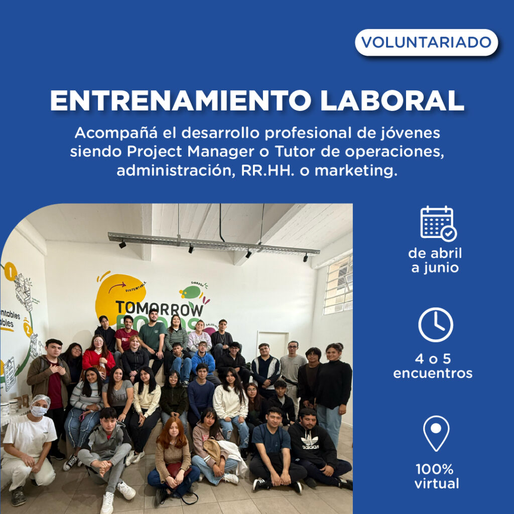Podés sumarte como Project Manager o acompañar al grupo de jóvenes desde distintas áreas: Administración, RR. HH., Marketing u Operaciones. Tu experiencia puede ayudarlos a dar sus primeros pasos con más herramientas y confianza.